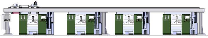 ガントリーローダー等によるライン構成の場合には、搬送装置から上下ストロークを取り除くことで高さを抑えたシンプルなラインが構築でき、天井の低い工場でも対応可能です。
