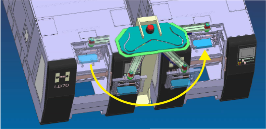 隣接する機械と機械の間でワークを直接