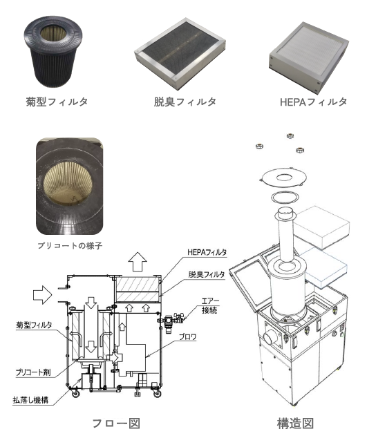 菊型フィルタ、脱臭フィルタ、HEPAフィルタ
