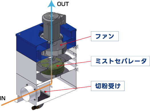 ミストセパレータは簡単に取り外せて、洗浄・交換が可能です。