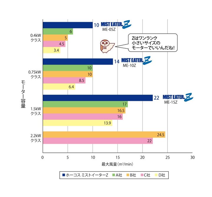 ワンランクダウンサイジングしたモーターでも従来機と同等の風量を実現(当社比)