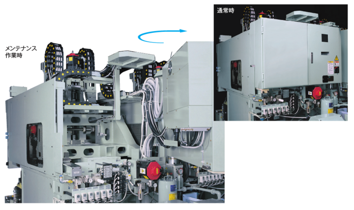 機械後面の制御盤は開閉式になっているため、メンテナンス用ワイドエリアを確保!