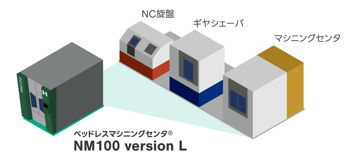 ベッドレスマシニングセンタ®NM100 version Lにスカイビング加工の機能を搭載し、ギヤ加工、切削加工を1台で対応します。